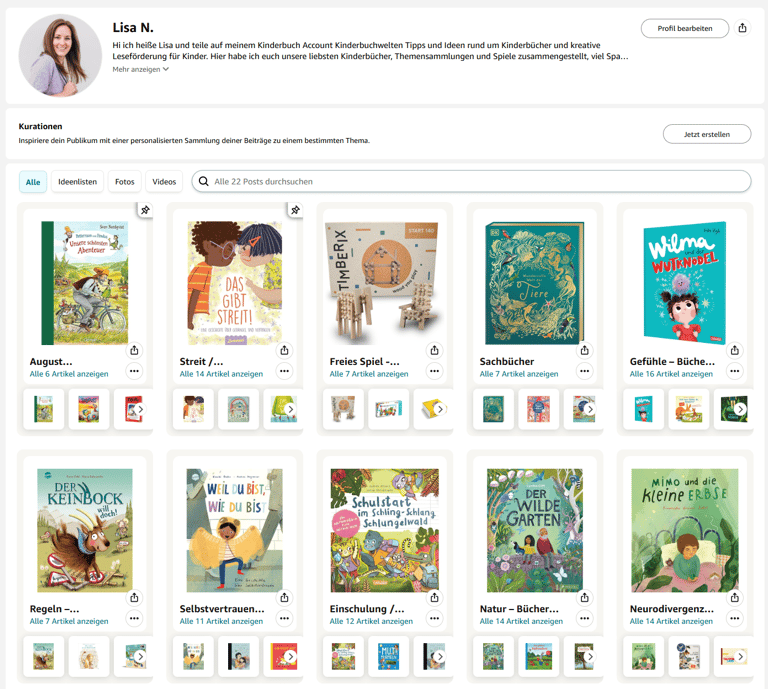In meiner Amazon Storefront findest du eine liebevoll kuratierte Auswahl an Kinderbüchern und Spielen, die genau das tun: